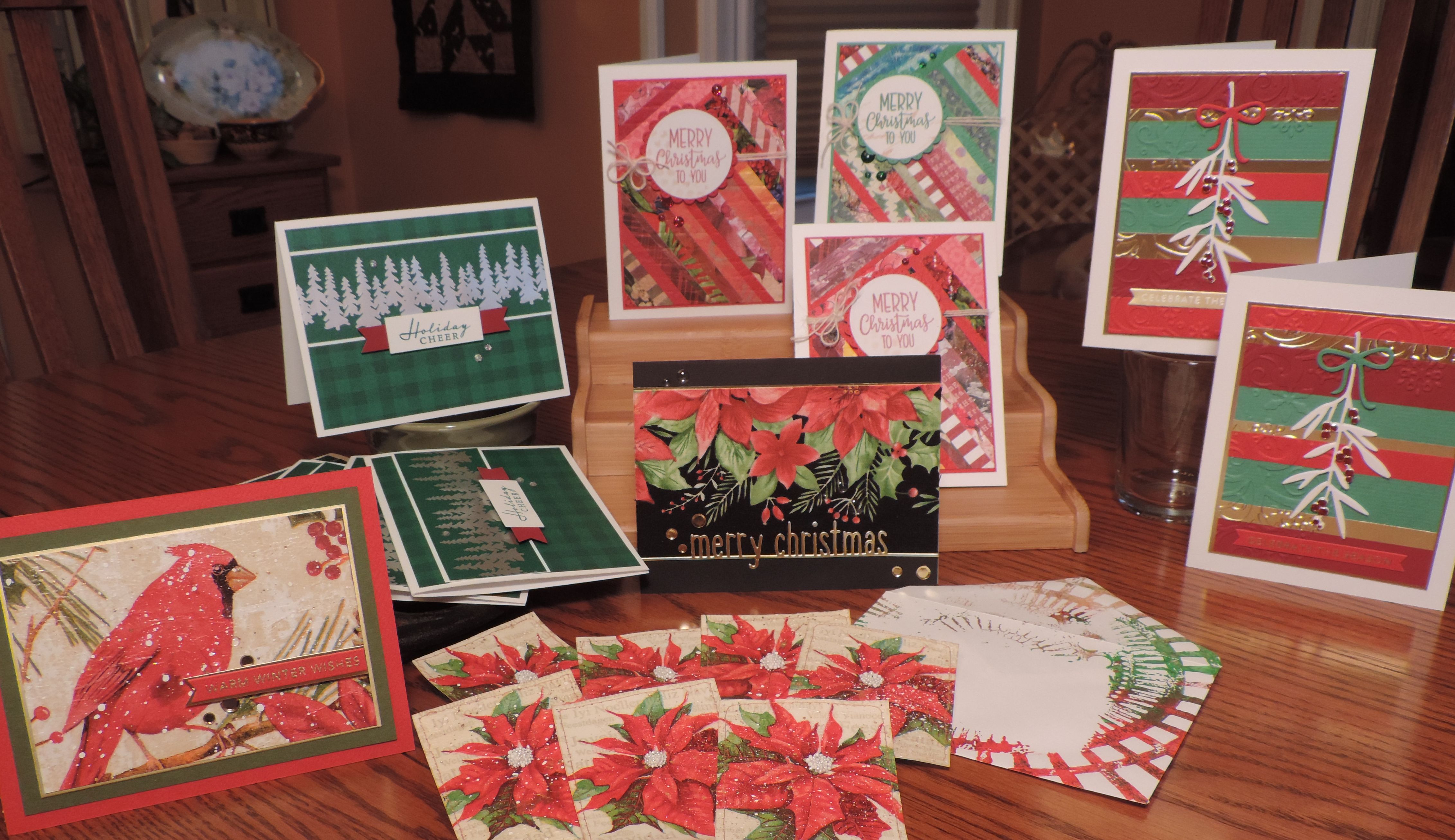 The last time I worked on my "Box of Partials" was at Cozy Crop two years ago this week. A lot has accumulated since then. Truthfully, I hate this box! I find it very difficult to see where or what I can do with leftovers. Part of me just wants to make the exact card it had originally been. BUT, I persevered and ended up with eleven cards. This took almost two weeks to complete and I'm now tired of it all... so, away the box goes until next time! SOOOOOO, what did I do? Take a looky-loo...
